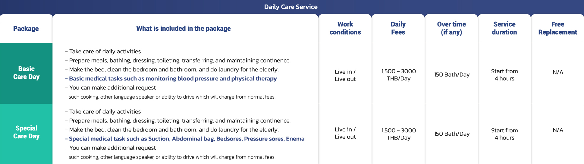 **Service fee includes: service planning and matching between employer and employee, caregiver’s salary, replacement guarantee, criminal background check, uniform, and interview fee.