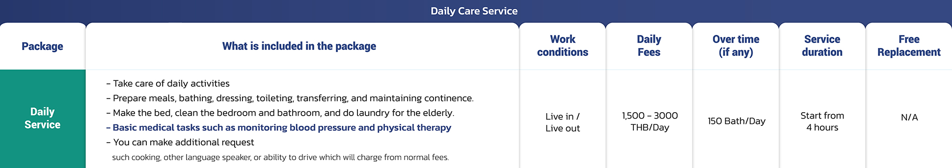 **Service fee includes: service planning and matching between employer and employee, caregiver’s salary, replacement guarantee, criminal background check, uniform, and interview fee.